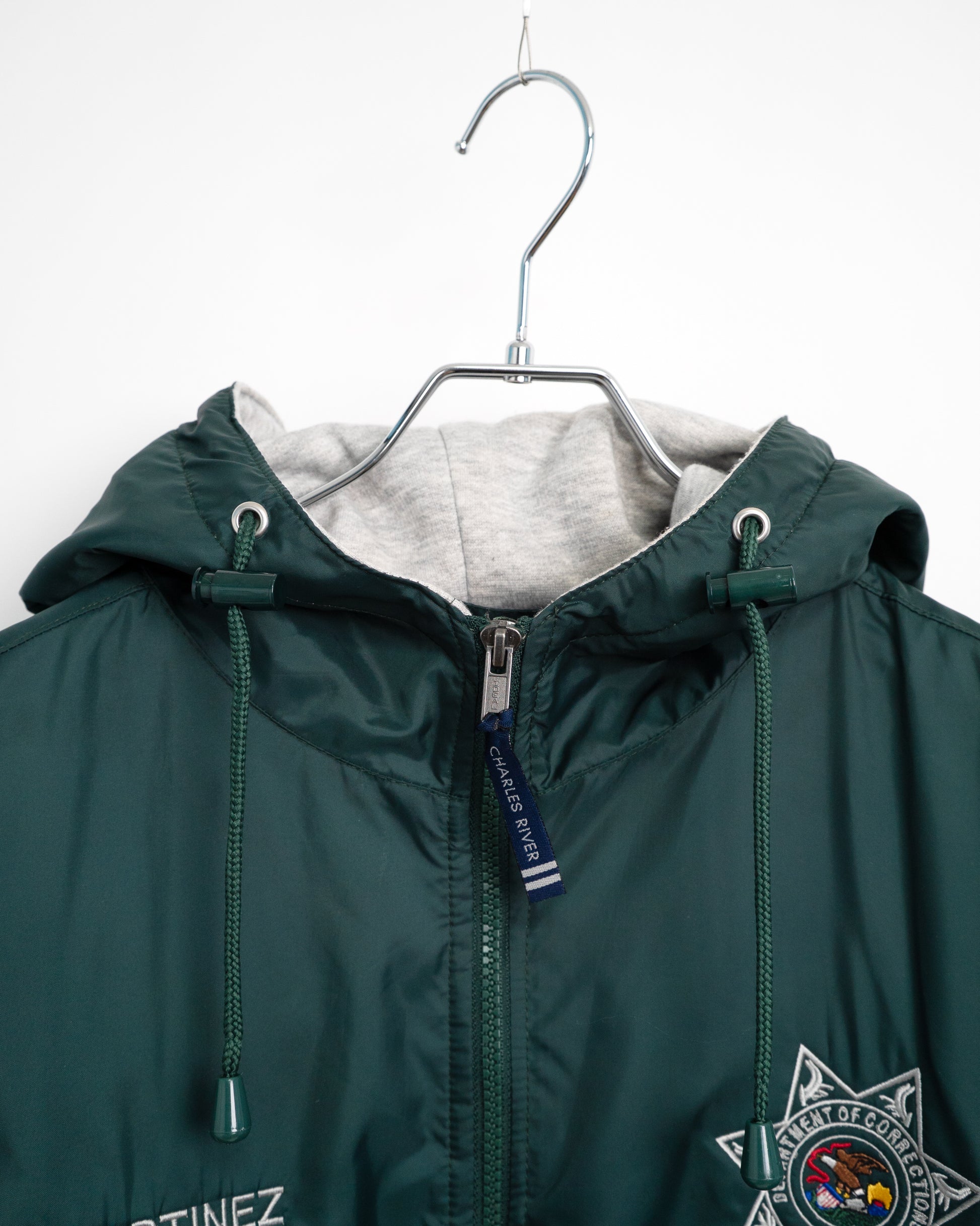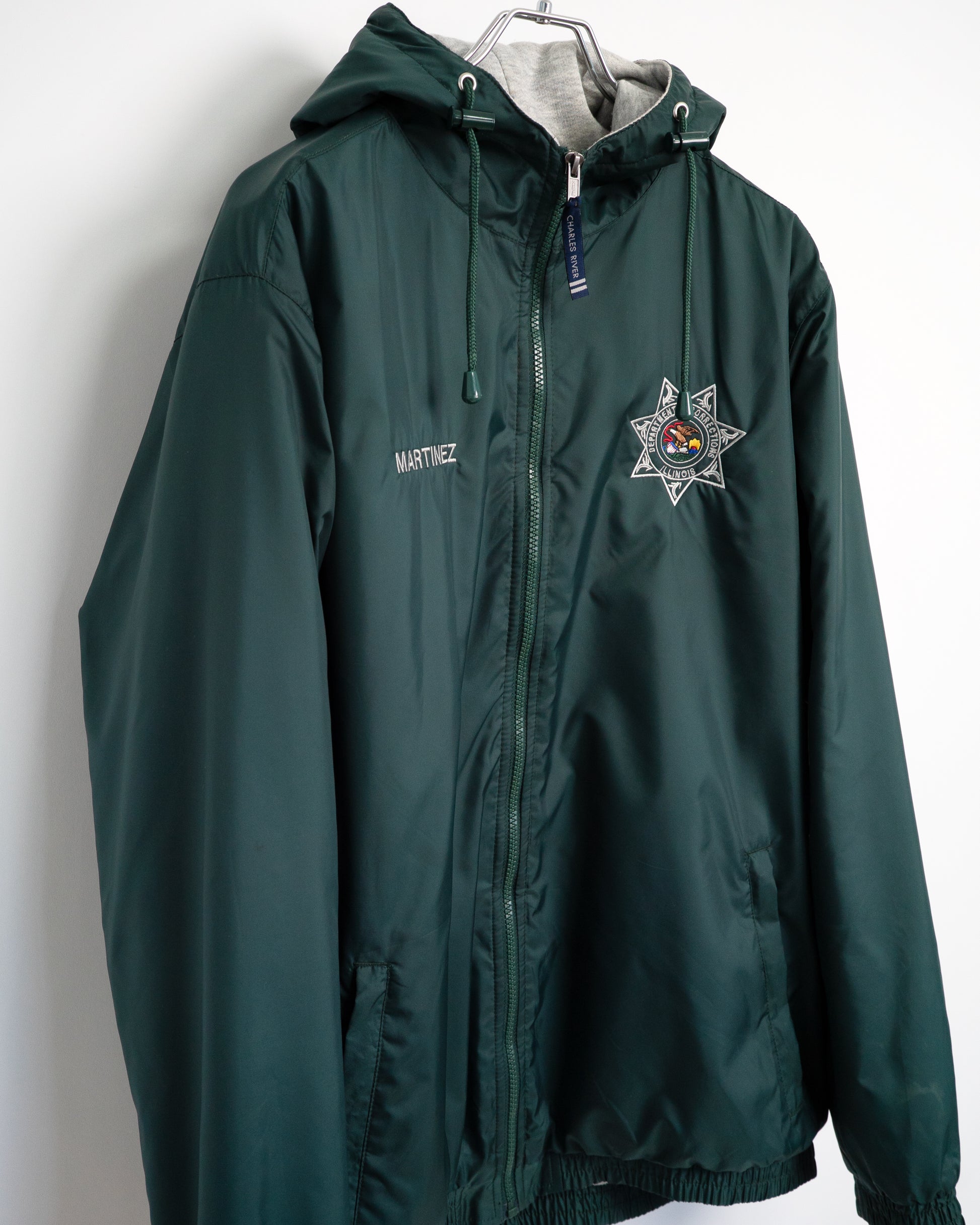 アメリカのイリノイ州矯正局(刑務所等の管理機関)で支給されていたナイロンパーカ。厳格な組織の制服だからこそ辿り着いた、独特のデザインと実用性が共存しています。
