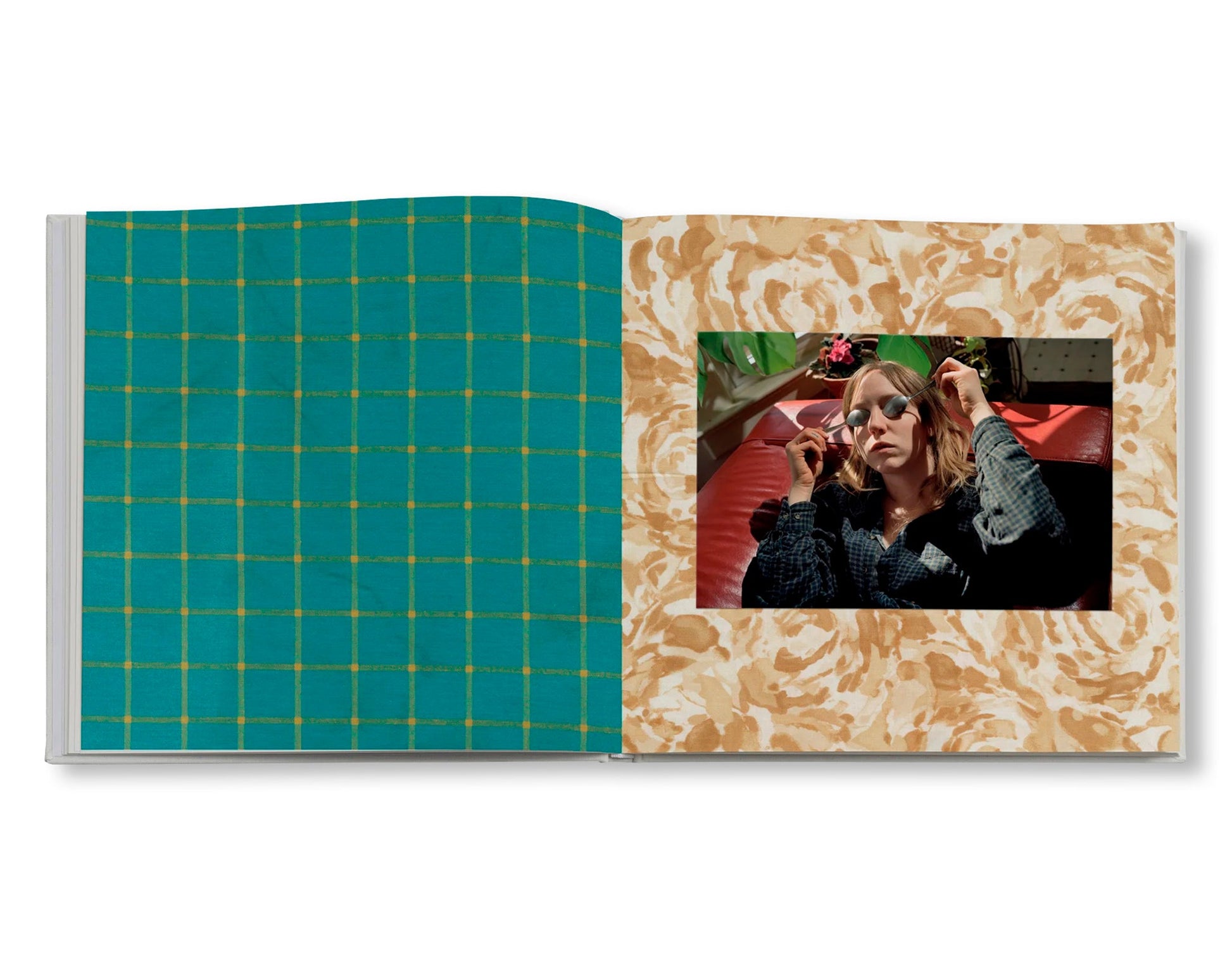 鮮やかな色彩と多層的な質感が響き合うページには、庭に芽吹く草花、友人の家で過ごす時間、海辺でのひととき、ふと訪れる静寂が漂い、その写真が描くのは、作者の日常に流れる穏やかな時間のかけらである。布地の模様は、まるでその光景の断片をすくい取ったかのように重なり合い、視覚的な調和と偶然の詩歌を生み出す。