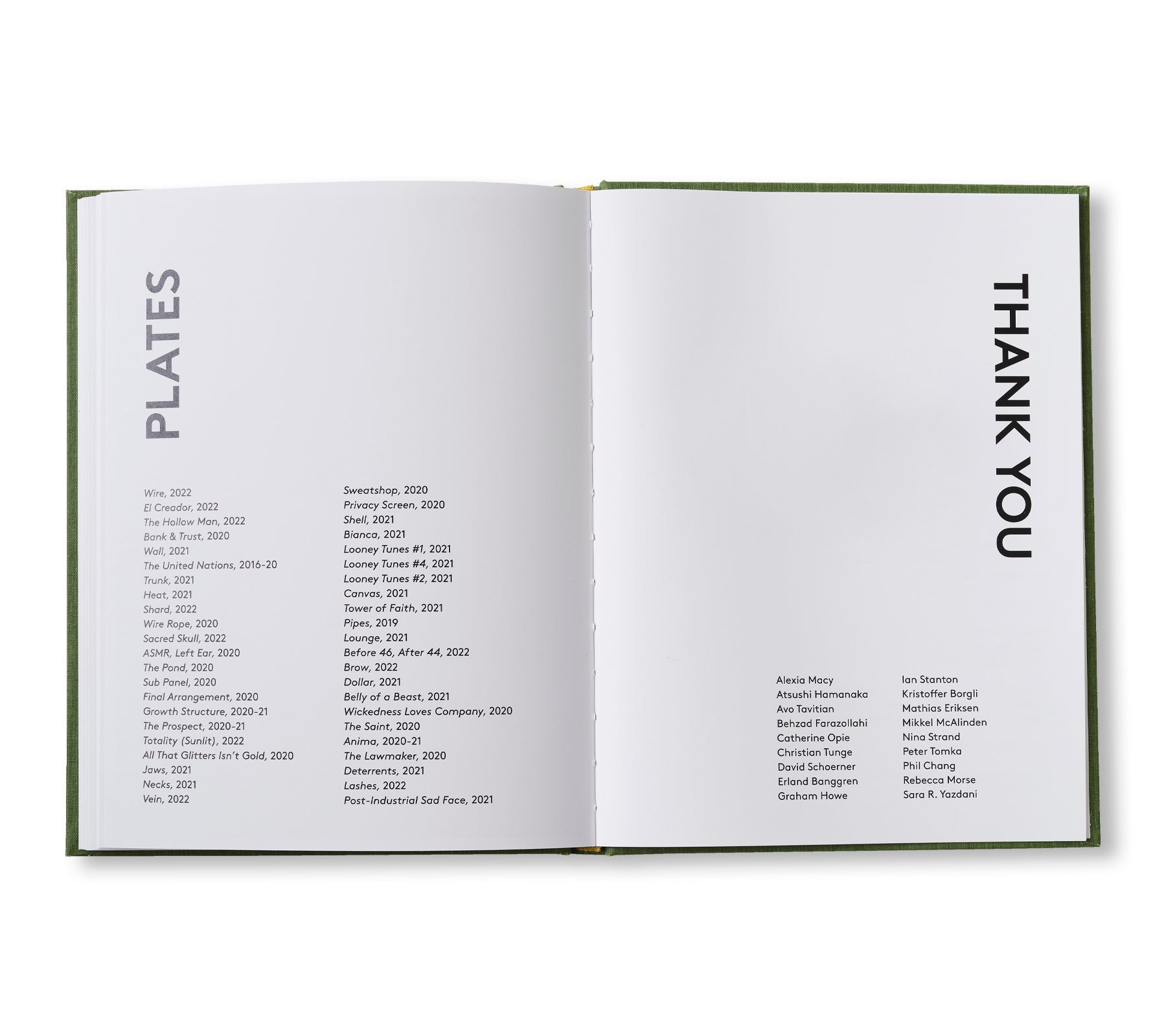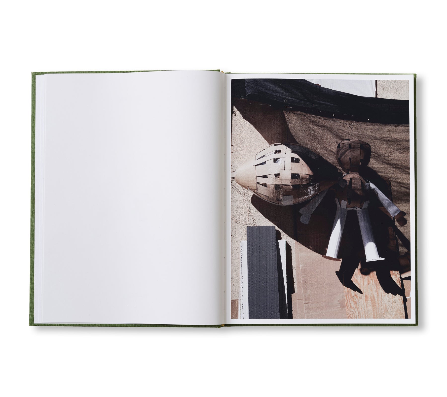 本書は、ロサンゼルスの工業地帯の中心にある作者宅に近いピニャータ工場で展示されている、ダンボールの切れ端から手で作られた形や姿から影響を受けている。後期資本主義の執拗な攻撃に急かされて建てられてきたものと同じように、窓の中に見える紙のからっぽの人形たちも、やがては鮮やかで安いプラスチックや砂糖菓子でいっぱいになる。こうしたイメージ群は、作者の展覧会「Breathing, Together」(2020年)と「The Itch」(2021年)と同じコンセプトを掘り下げており、それは現代のコミュニケーションの分断、現在に向けられたノスタルジー、消費主義の加速といったものが主である。